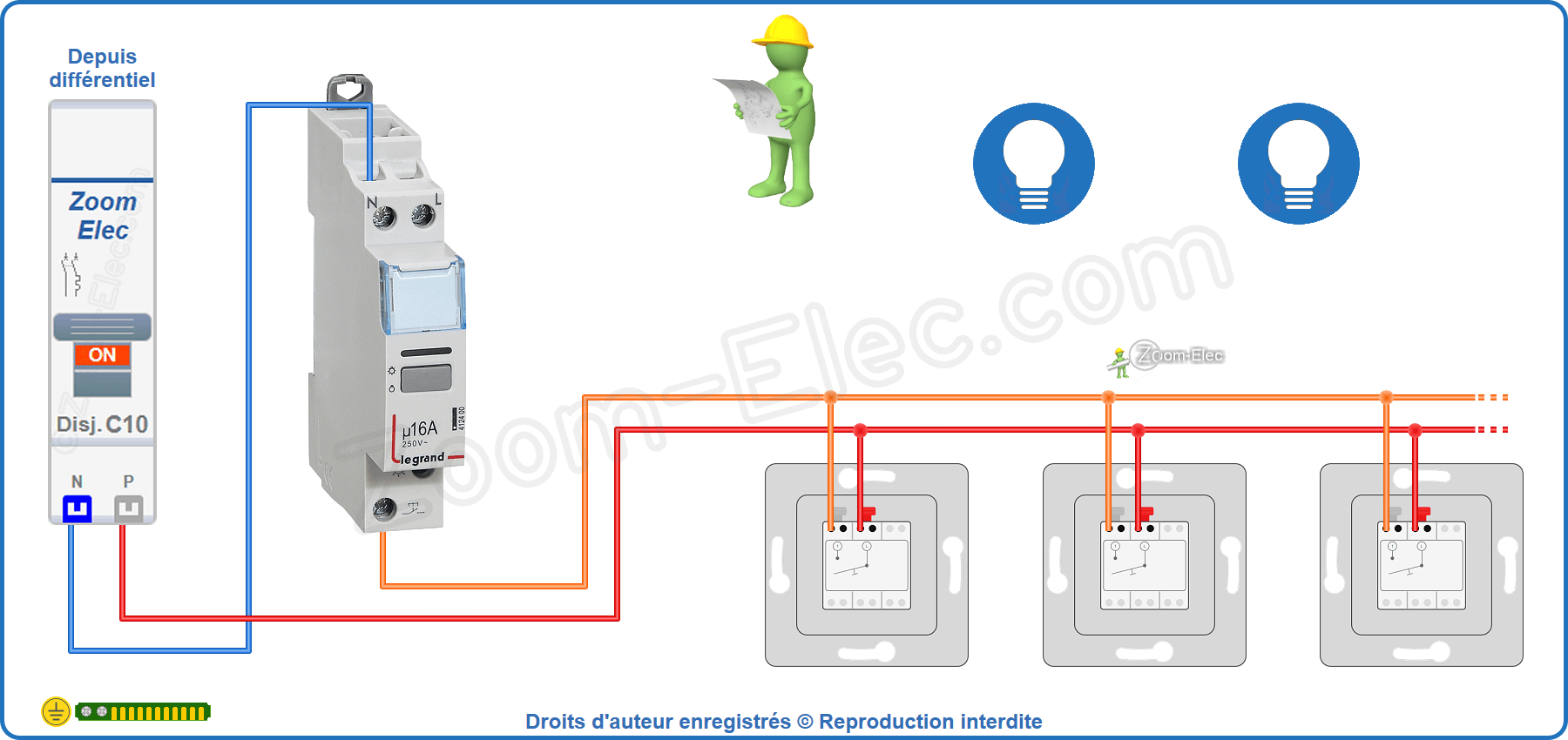 Schéma de câblage et branchement du télérupteur Legrand 412400